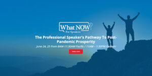 “What NOW Workshop for Speakers” It’s time to get back in business. The bottom dropped out of our industry… out of most industries. Income dried up. So many are reeling, wondering what to do next. Some have even given up. How about you? How much do you love what you do? How badly do you want this career? And… What now???